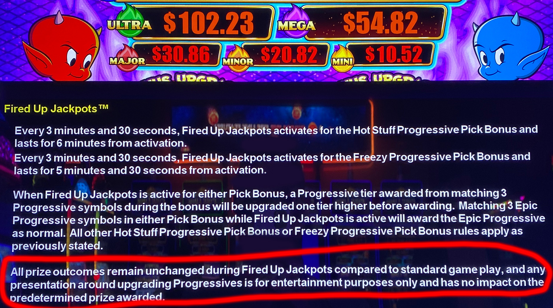 No. The game rules state, “All prize outcomes remain unchanged during Fired Up Jackpots compared to standard game play, and any presentation around upgrading Progressives is for entertainment purposes only and has no impact on the predetermined prize awarded.”